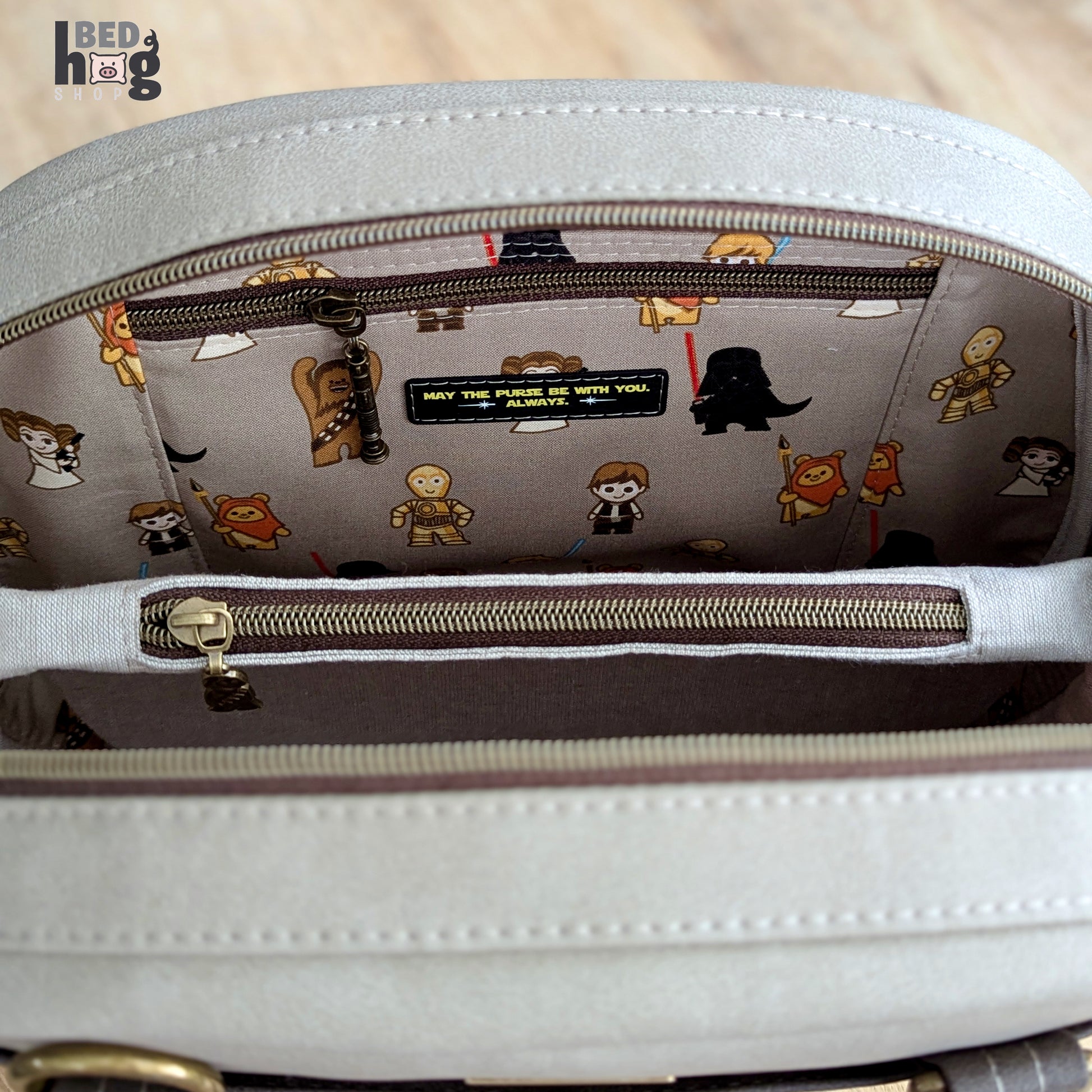 Adorning its exterior are meticulously placed unique travel patches, each a subtle nod to legendary destinations from across the known (and unknown) realms. This is more than just a bag; it's a statement piece that celebrates discovery, resilience, and the endless call of the open road – or hyperspace lane!